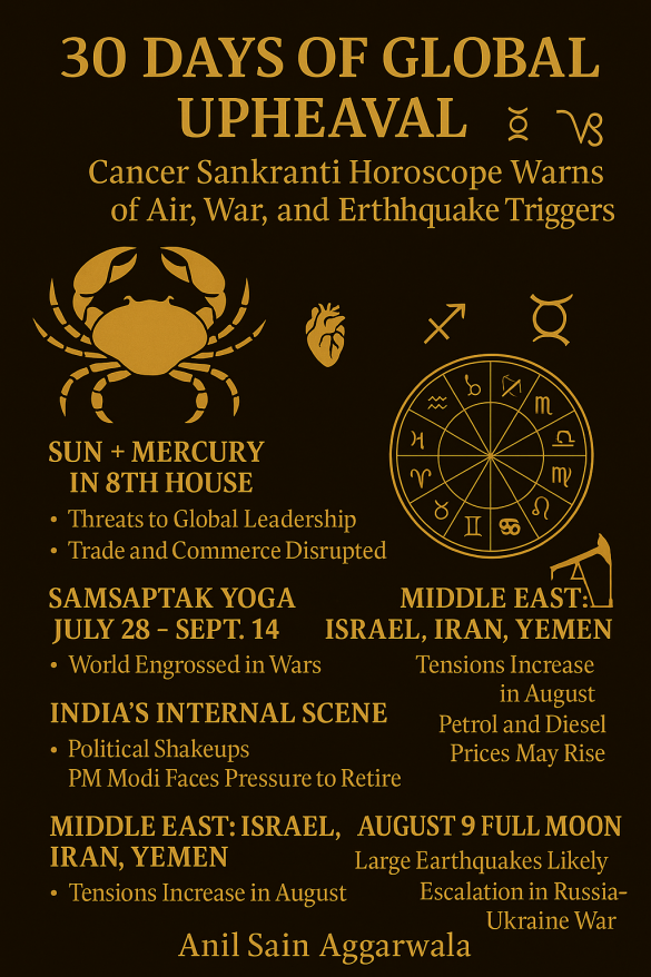 🌍 30 Days of Global Upheaval: Cancer Sankranti Horoscope Warns of Air, War, and Earthquake Triggers