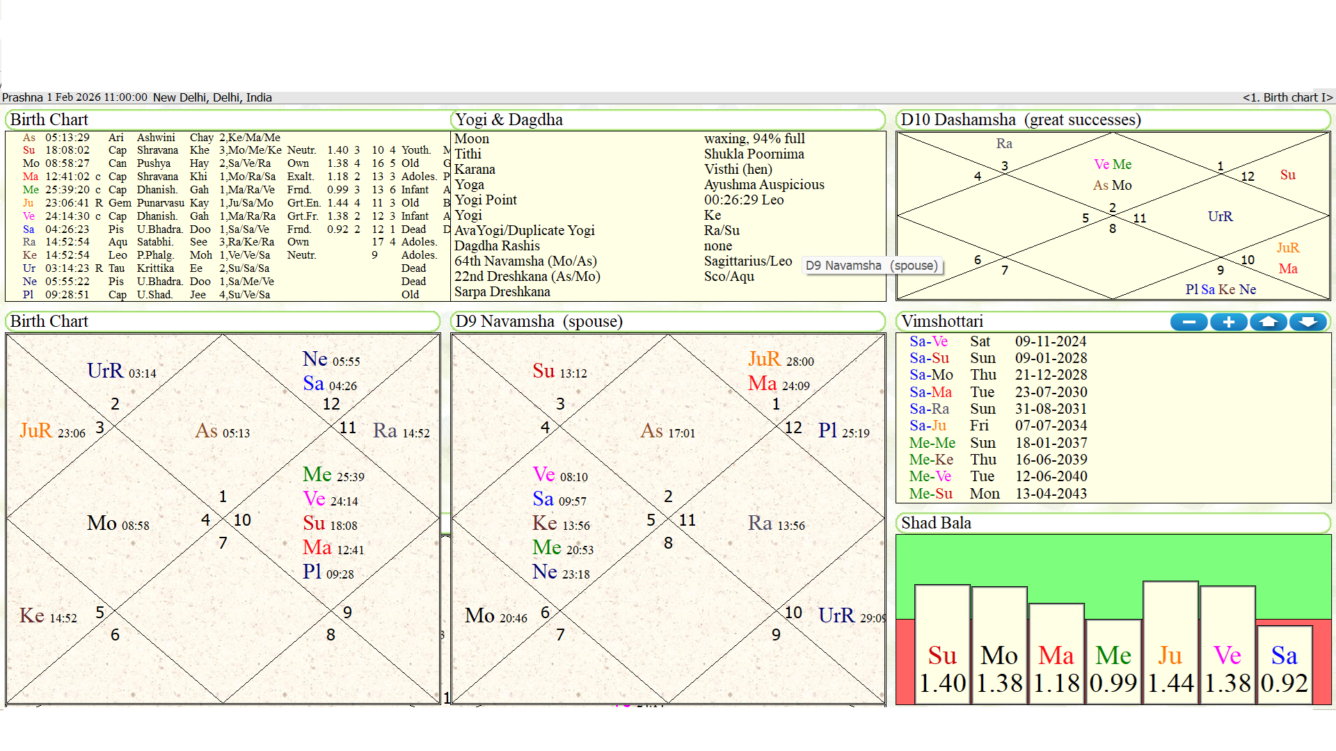 An Astrological Analysis of the 1 February 2026 Poornima Lunation Chart (11:00 AM, New Delhi)
