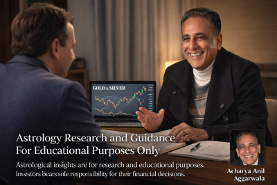 Acharya Anil Aggarwala is an Engineer-turned-Astrologer and a research disciple of Shri K. N. Rao from Bhartiya Vidya Bhavan, New Delhi. He has devoted years to the study of Mundane and Financial Astrology, applying rare classical principles to understand the timing of global events, market behaviour, and precious metals movements.
