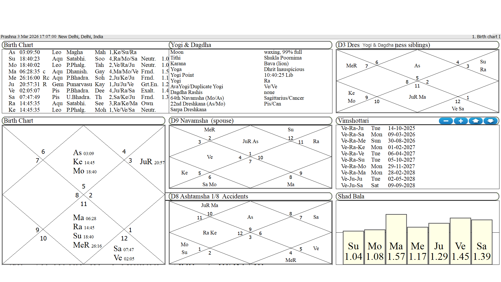 Lunar Eclipse on the 2nd March 2026 in the 1/7 axis of the Ascendant and the Natal Mars and Saturn the Marak in the 22DK sign can put Trump in difficult situations due to Health and Heart troubles. LH Side is the Natal Chart and the RH side is the Transit of the 2nd March 2026