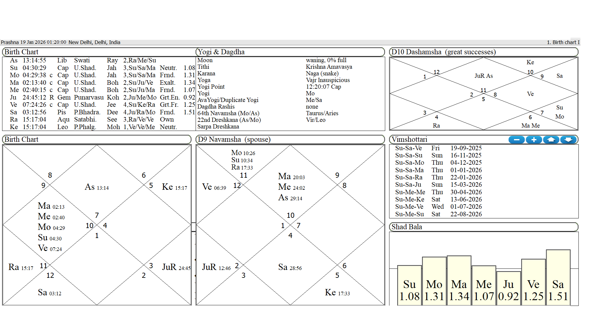 The chart of the 21st Jan. 2026 is below. This chart is self explanatory See the Rashi and the Navamsha chart explosive for the whole world