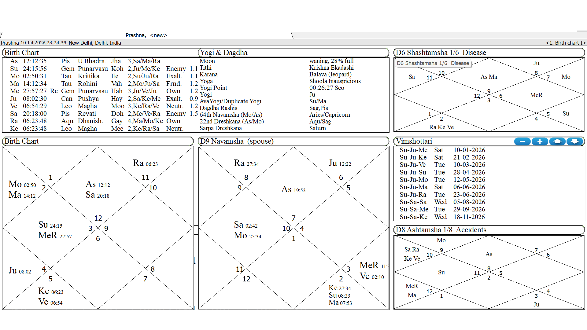 The chart of the 10th July 2026 below using the same Lagna Degrees