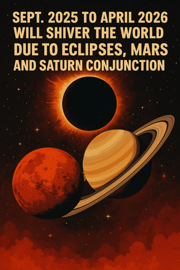 The world is moving toward a cosmic crossroad. Between September 2025 and April 2026, the Eclipse Axis of Leo–Aquarius and Cancer–Capricorn, combined with the Mars–Saturn conjunction at 13° Pisces (Uttara Bhadrapada Nakshatra), forms one of the most dangerous war configurations seen in over a century.