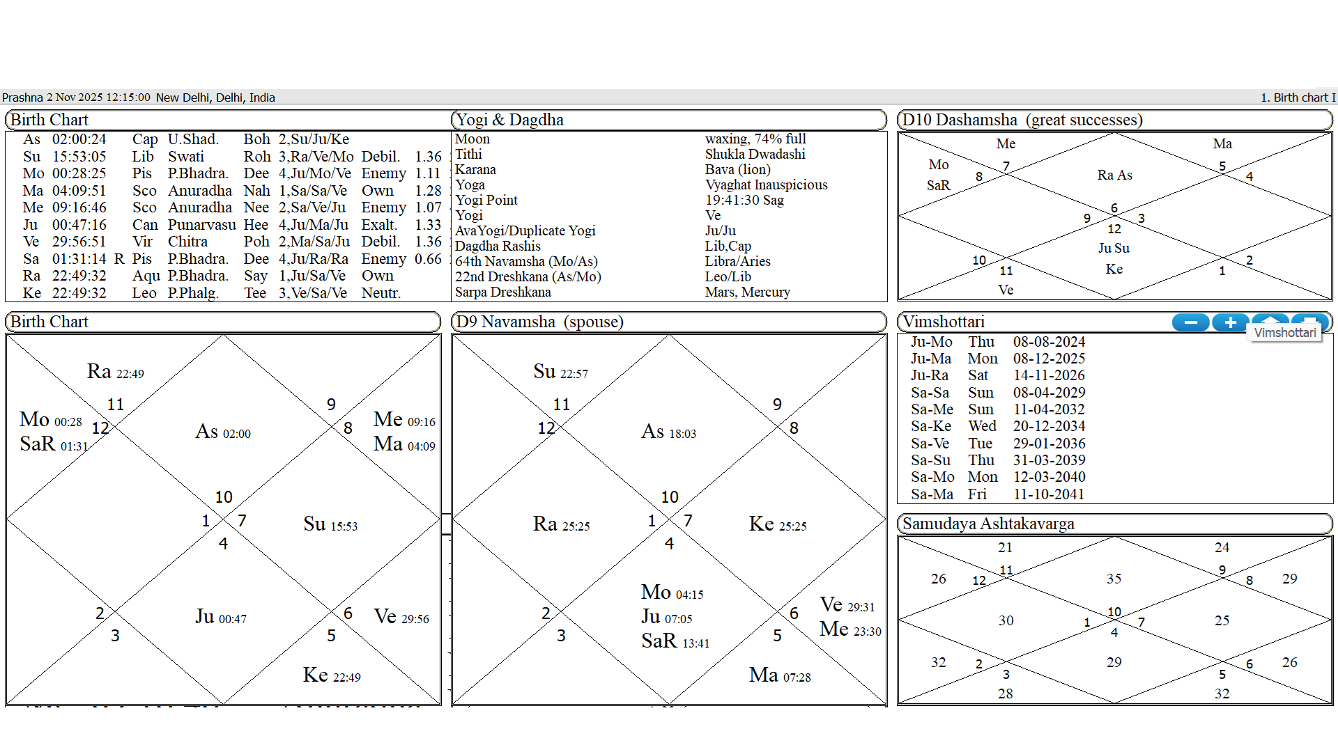 Astrological Analysis of 2nd November 2025, 12:15 hrs – New Delhi