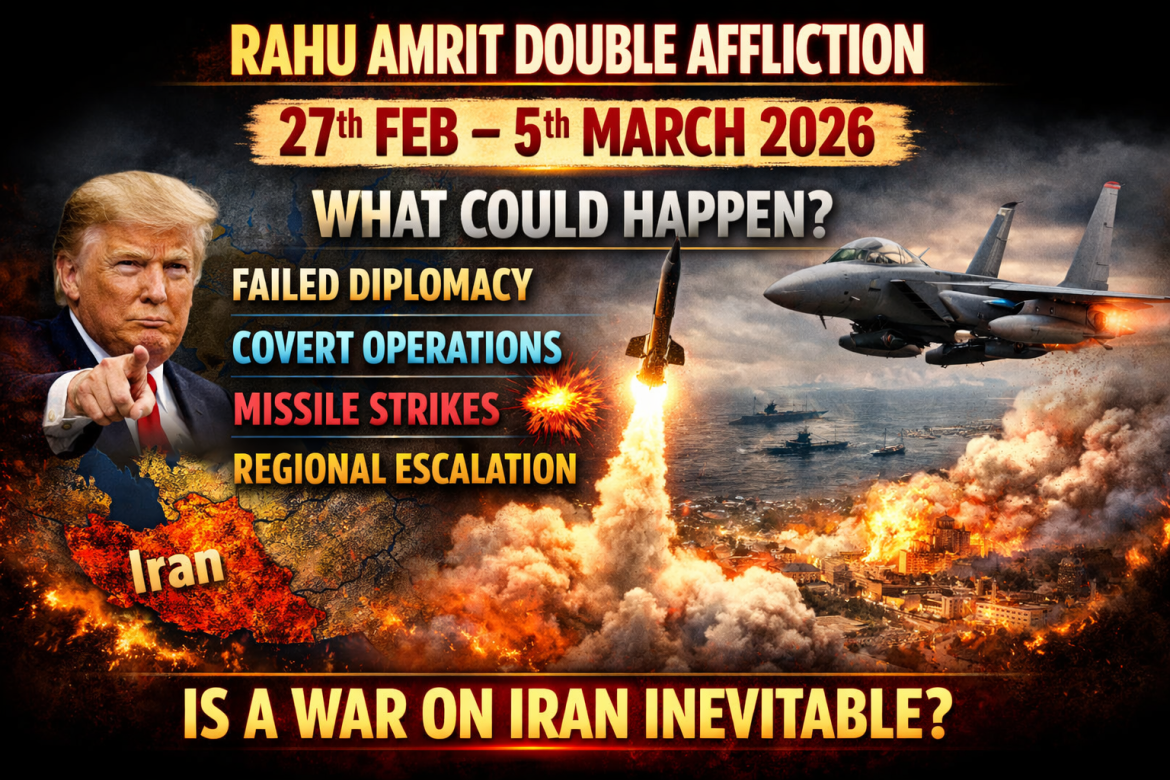 From 27th February to 5th March 2026, this double affliction indicates deception, sudden reversals, aggressive diplomacy, covert operations, and the possibility of unexpected military manoeuvres. When Rahu Amrit is disturbed in this manner, negotiations can collapse abruptly and strategic calculations may take a drastic turn.