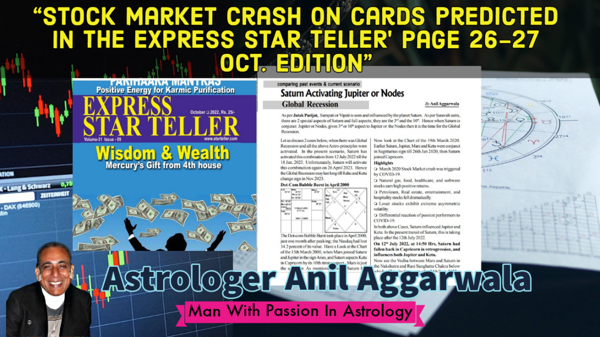 In the Leading Astrology Magazine Of India “EXPRESS STAR TELLER ” Oct. edition on the page 26 -27 Saturn Activating Jupiter & Nodes Global Recession