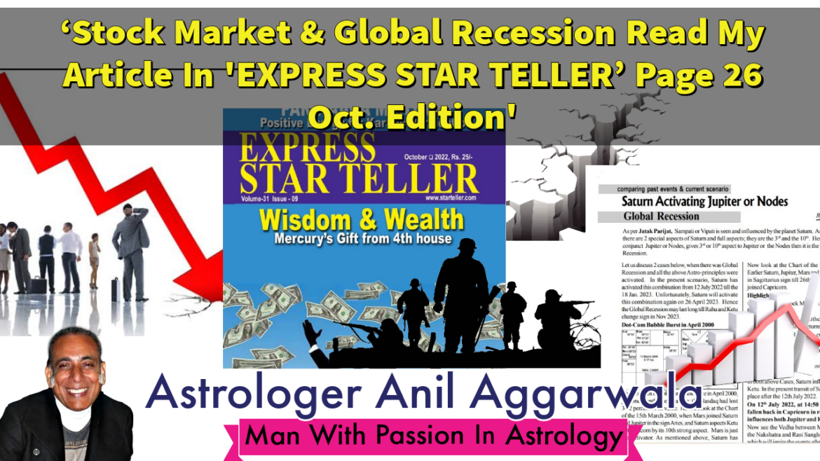 Leading Astrology Magazine Of India “EXPRESS STAR TELLER ” Oct. edition on the page 26 -27 Saturn Activating Jupiter & Nodes Global Recession