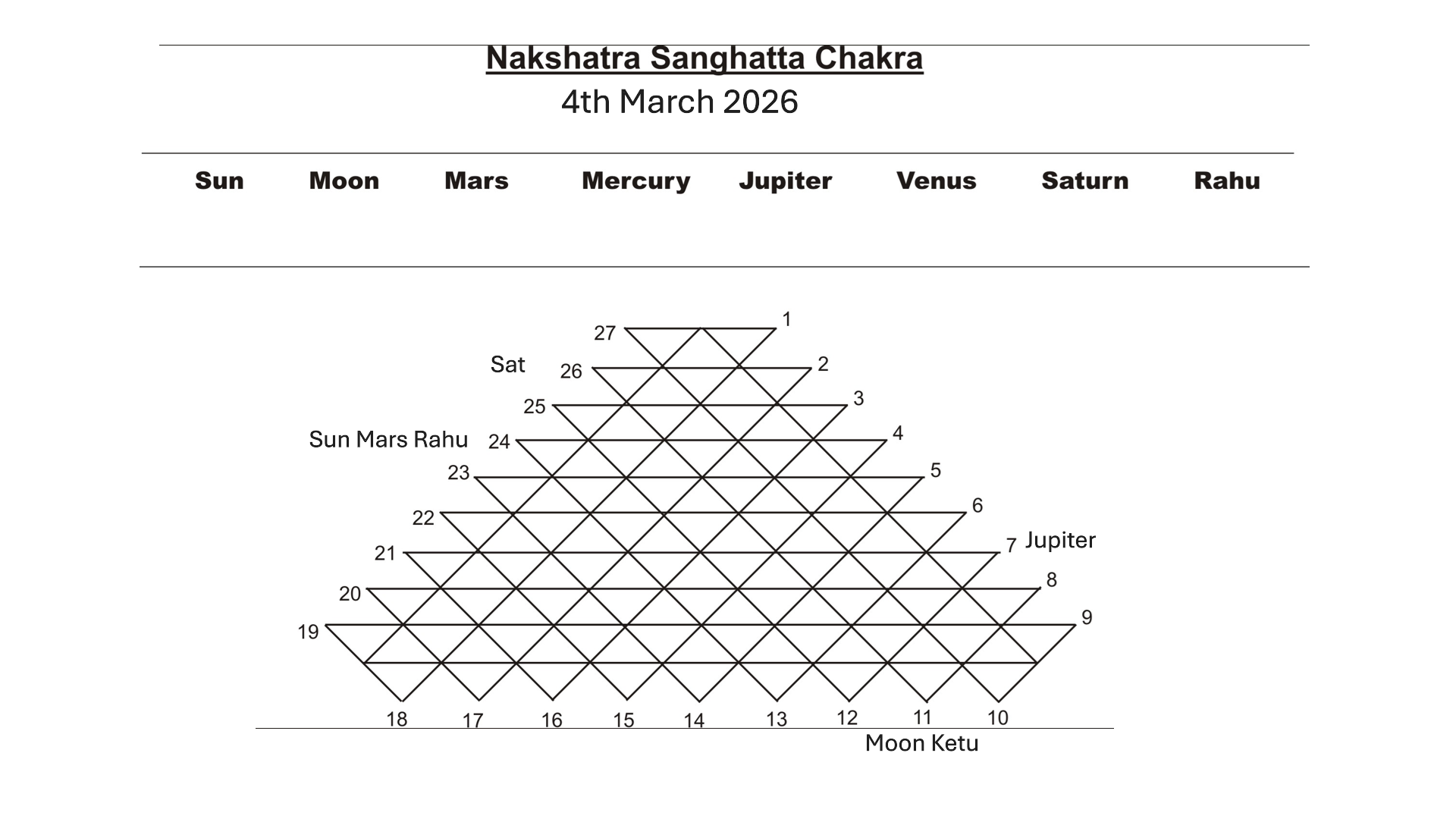 Nakshatra Sanghatta Chakra shows Vedha involving Moon–Ketu–Saturn