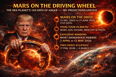 The period from 27 December 2025 to 21 June 2026—with Mars driving for 150 days, eclipses intervening, unstable lunations, and rare planetary clustering—marks one of the most volatile global phases of the decade.