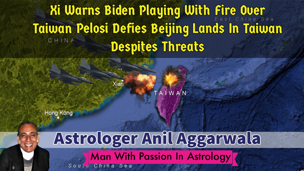 Pelosi US Speaker and Senator Lands In Taiwan despite threats from China. This will be a turning point between China and US and the Relations may go for a Toss. China is in War Mood and take an aggressive action against Taiwan and capture the Territory by invading it asper Astrology day after tomorrow on the 4th August when Moon is in Swati star and Moon is placed with Ketu in the 7th house of the Chart